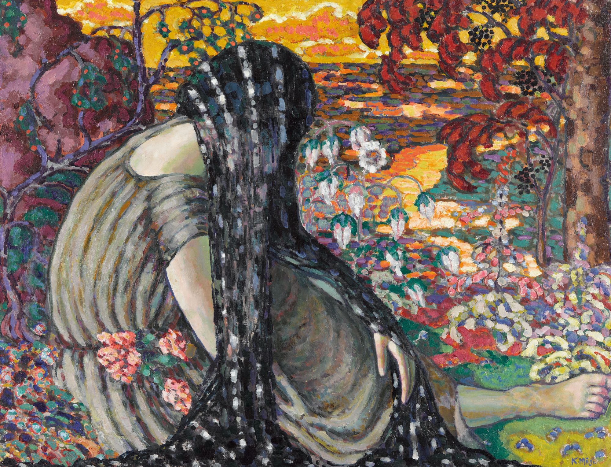 This painting is the only example where Konrad Mägi has depicted a human figure in a non-portrait format. In other works, Mägi has incorporated human figures into a landscape or park motif, but in no other known works did he make a person the focus as he does in this work. So this is a rare example in his oeuvre, where he was not reacting directly to an external impulse but consciously constructed the painting’s motif.
