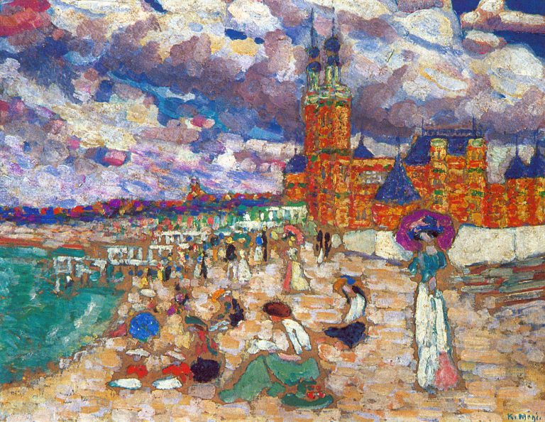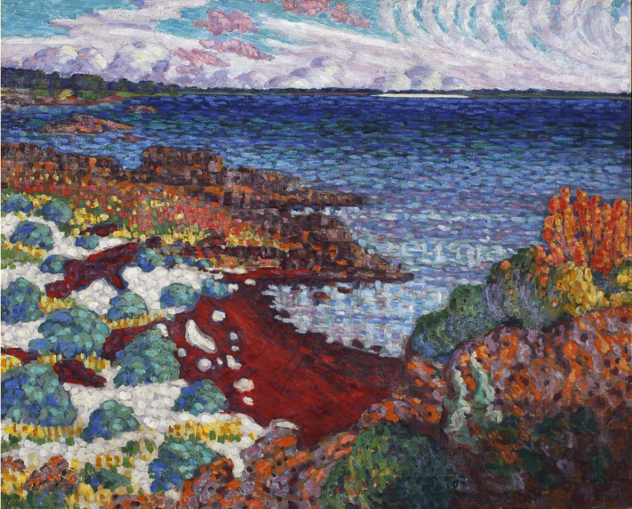 Although Mägi had encountered pointillism in Paris, he applied the technique in his own way, without regard to theories. Short or dot-like brushstrokes make the contrasting colour surfaces bloom like coral and radiate the bright, sharp light of the North.