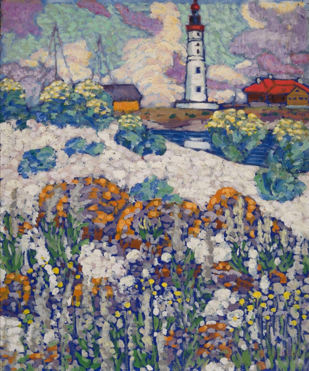 Mägi’s fondness for plants would not return in quite such an intimate and emotional form. Later on, he painted plants in a much more distanced and generalized manner: bushes in the distance, decorative tree trunks and so on. Flower blossoms on his paintings are generally detached from nature; placed in a vase or adorning a portrait of some lady. The wild botanical abandon of Lighthouse on Vilsandi appears to spring first and foremost from the aesthetic value of the plants: the colourfulness of Vilsandi’s flora on the microscopic level is truly extremely spectacular.